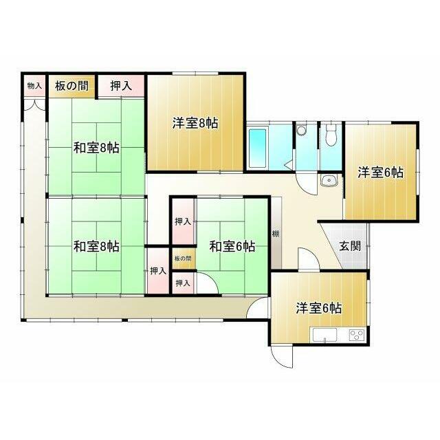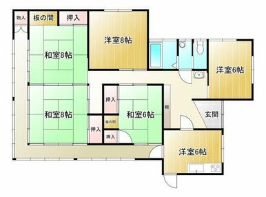 | 間取り(内訳) | 5DK(和8×2、6、洋8、6、DK6) | 建物面積 | 125.15㎡ |
